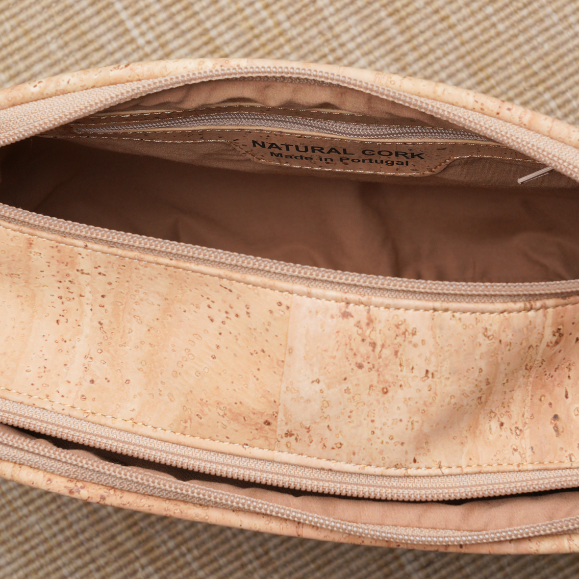 Die Korktasche punktet mit zwei grossen Reissverschlussfächern mit erstaunlich viel Platz.