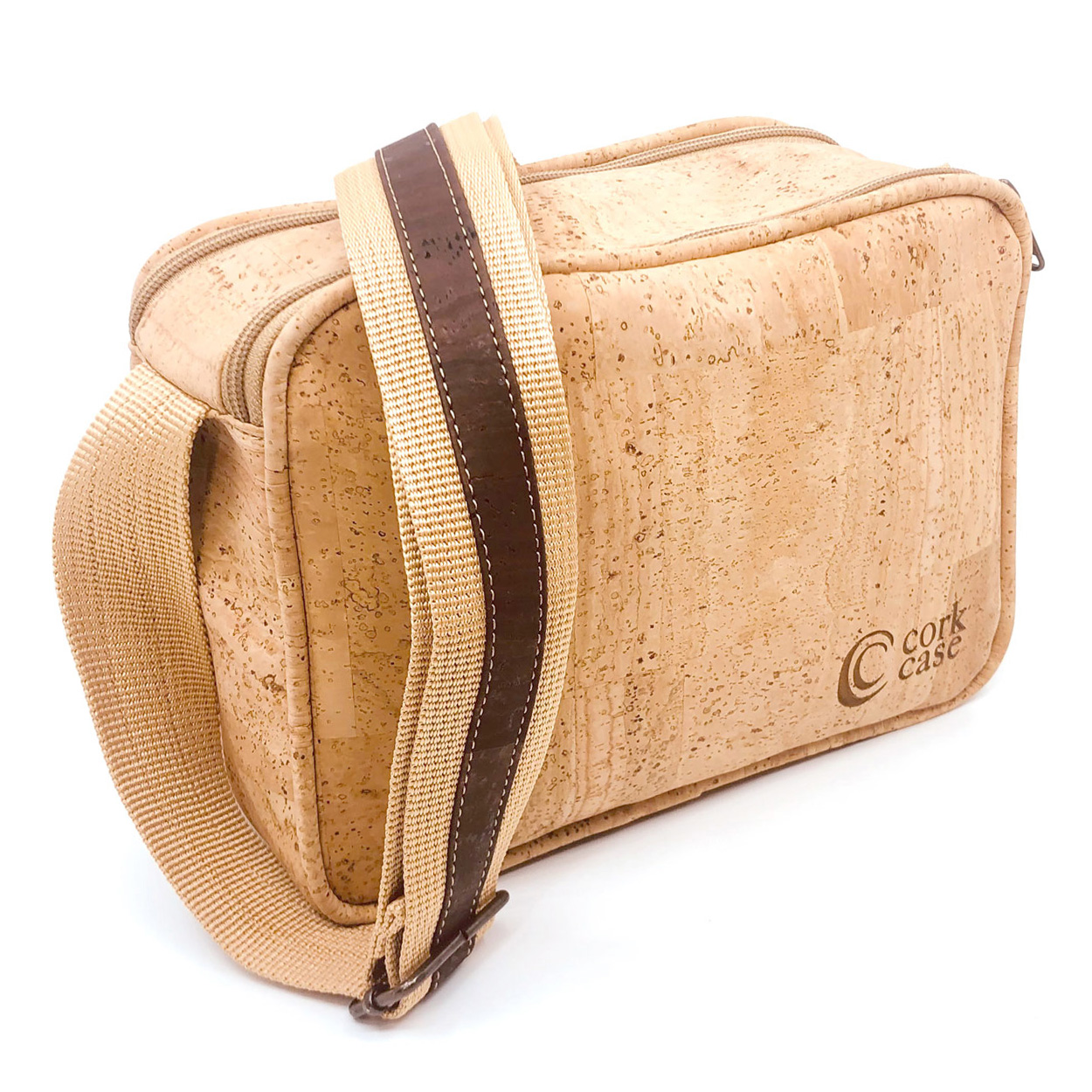 Die Umhängetasche ist federleicht und trotzdem belastbar. Ergänzt wird der Naturkork mit dunkelbraun eingefärbtem Korkstoff auf dem Trageriemen.