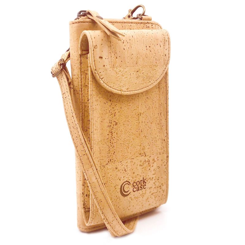 Dein Portemonnaie mit Handy-Fach aus Kork fühlt sich nicht nur angenehm weich an, es ist auch sehr robust und pflegeleicht. Du kannst es einfach mit einem Schwamm, ein bisschen Wasser und notfalls ein wenig Spülmittel reinigen. Die grosse, geräumige Geldbörse bietet viel Platz für deine Sachen: Karten, Fotos, Dokumente, Noten und Kleingeld. Zudem findet auch dein Mobiltelefon Platz im Zusatzfach auf der Vorderseite. Die Tragriemen sind verstellbar und können auch entfernt werden.