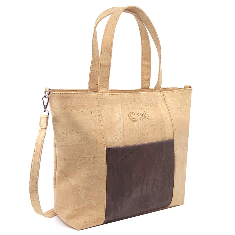 Die Korktasche ist federleicht und trotzdem belastbar. Ergänzt wird der Naturkork mit edlen, dunkelbraun eingefärbten Korkstreifen oben und unten.